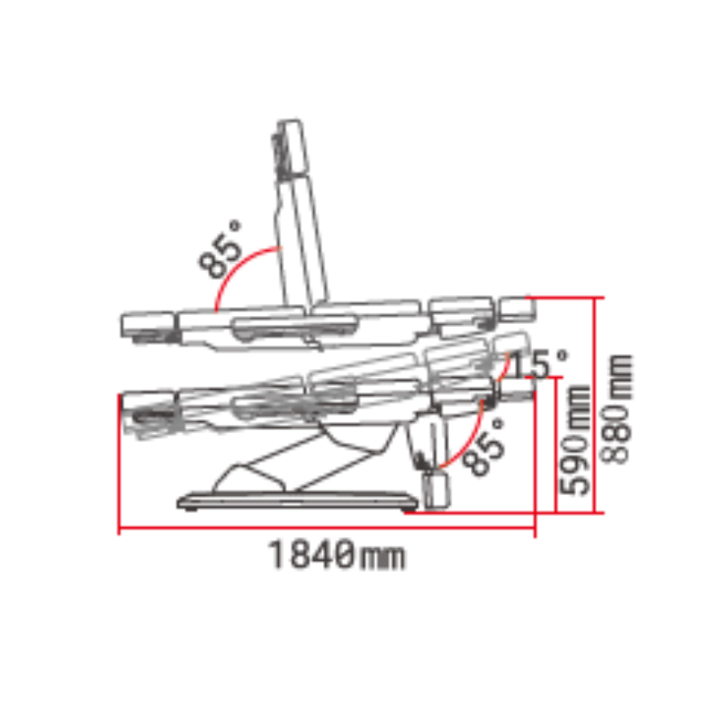 - Equipped with 4 motors for height, angle, backrest and controlling the leg part.