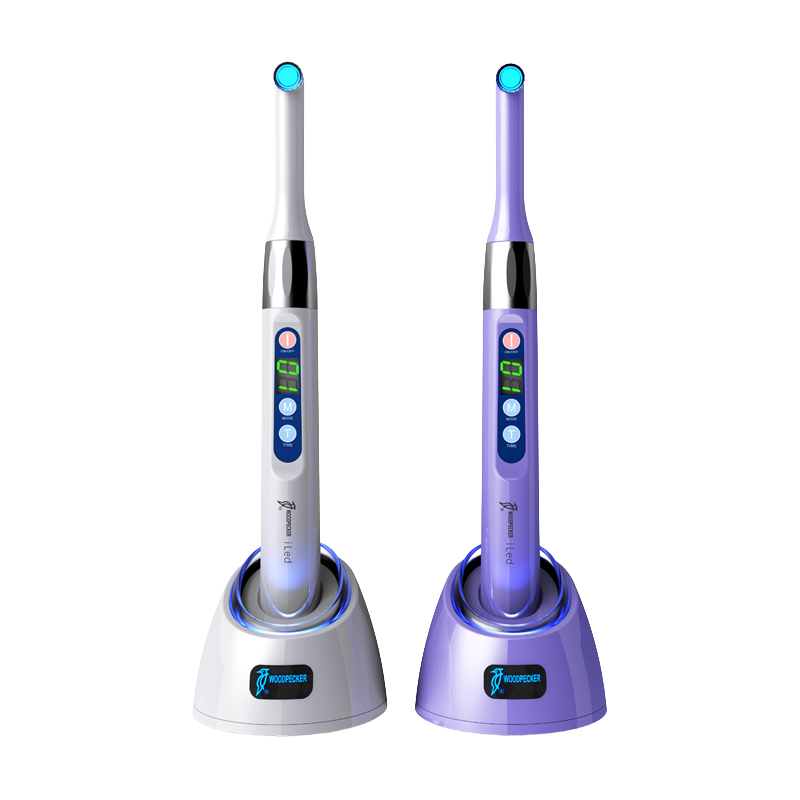 The emission wavelength range of il ed plus Wide Spectrum Curing Light is 385 nm- 515 nm, mainly adding the wave band of 385nm- 420nm. The additional band can better curing the resin materials containing new-style photoinitiators such as TPO. For example, restoration materials such as Tetric N – Ceram Bulk Fill(Ivoclar), Amelogen Plus (UItradent), and ENA Hri (Micerium). The additional wave band can also reduce the risk of resin shedding and incomplete curing. The light absorbing peak of traditional materials (containing camphorquinone, the red line above),is 460 nm,so the curing can be done both ordinary Curing Light and Wide Spectrum Curing Light. However,the camphorquinone is yellowish and it is not suitable to add large amount of it to bleached resin or light-colored resin. The light absorbing peak ofnew material (including TPO, the blue line above) is 405 nm. iLed plus owns additional wave band of 385nm-420nm which can better curingthese materials. TPO is white and is suitable for being added to bleached resins and light-colored resin.